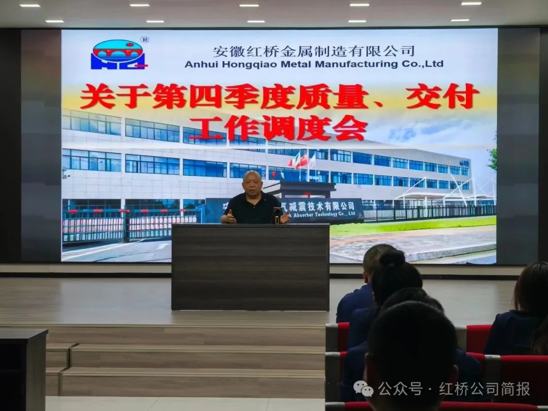 为全力保障第四季度客户订单的准时高质量交付,冲刺年度经营目标,公司制造系统于2025年9月28日下午在报告厅召开了“第四季度质量、交付工作调度会”。本次会议由公司分管副总经理李红杰主持,制造一部、计划部、品保部、技术部管理干部及计划员、巡检人员共同参会。
